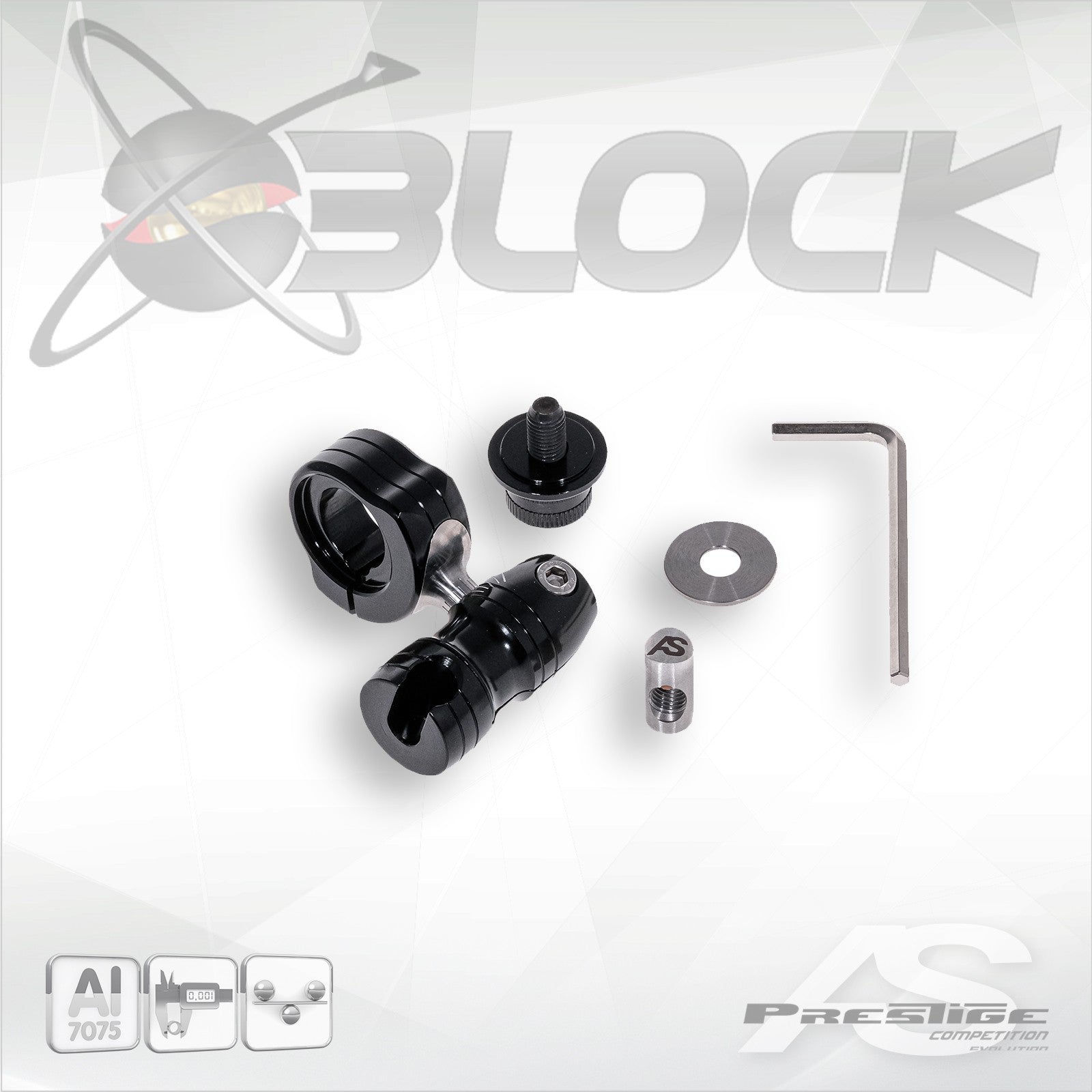 SIDE KNEECAP MOUNT, TO BE FIXED BOTTOM RISER ONLY. - O BLOCK. A unique instrument in the world, beautiful, complete, easy, fun, efficient and... French. Adjust the balance and verticality of your bow, your stabs setup, without a wrench. Control the kneecap tightening. Make your stabs fixed, or movable. Depending on the conditions or your mood of the day, adjust angles to arm strength. 7075 aluminium, robust, noble. Stainless steel, calibrated and polished. Universal fits all stabs. Bottom-riser version. Side bar adjustable 360 degrees in depth, from 0 to 45 degrees in opening. Do not fit COMPETITION QD mounts 5/16in / ZERO / TRIO.
