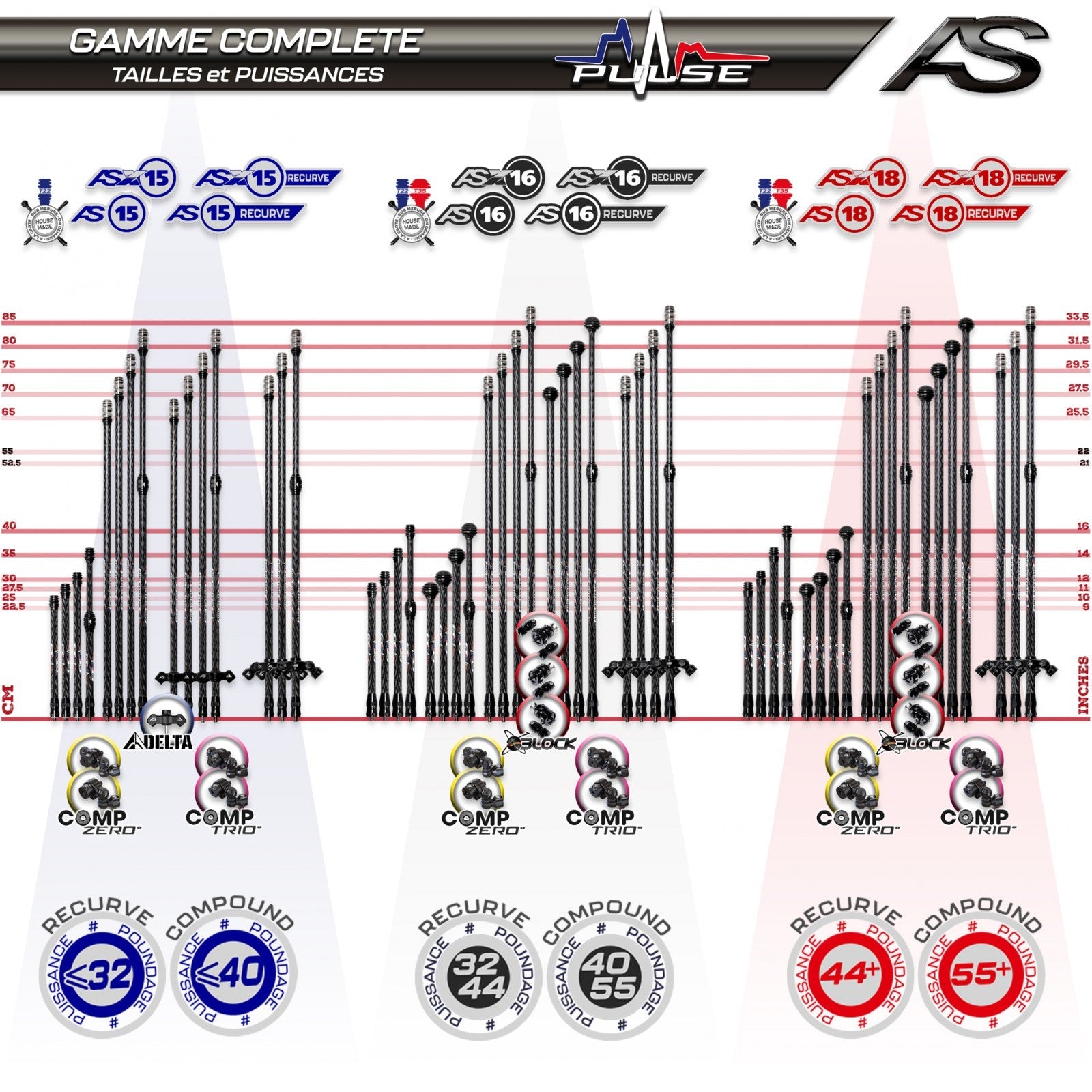 RH/LH - Tous les articles indiqués comme RH sont adaptés aux archers droitiers tirant la corde de la main droite. Les articles indiqués comme LH sont réservés aux archers gauchers.