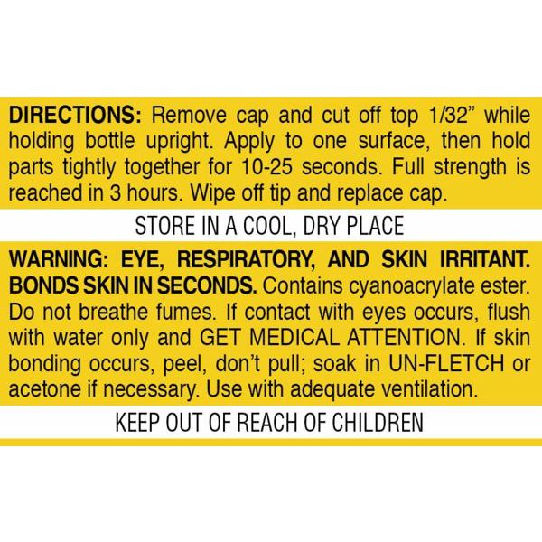 Cyanoacrylate gel glue, for perfect fletching of any kind of vanes and feathers on any kind of shaft. Gel structure to fill the gap between the base of the vane or feather and the arrow shaft. Dries in 15 to 25 seconds depending from porosity of materials coupled. Super quick, gap filling, dries clear. Bonds vanes, feathers, nocks, points, pins and inserts. Ideal for aluminium, carbon and wood arrow shafts. Sold in 1/2oz plastic bottles. Made in USA specifically for Archery applications.