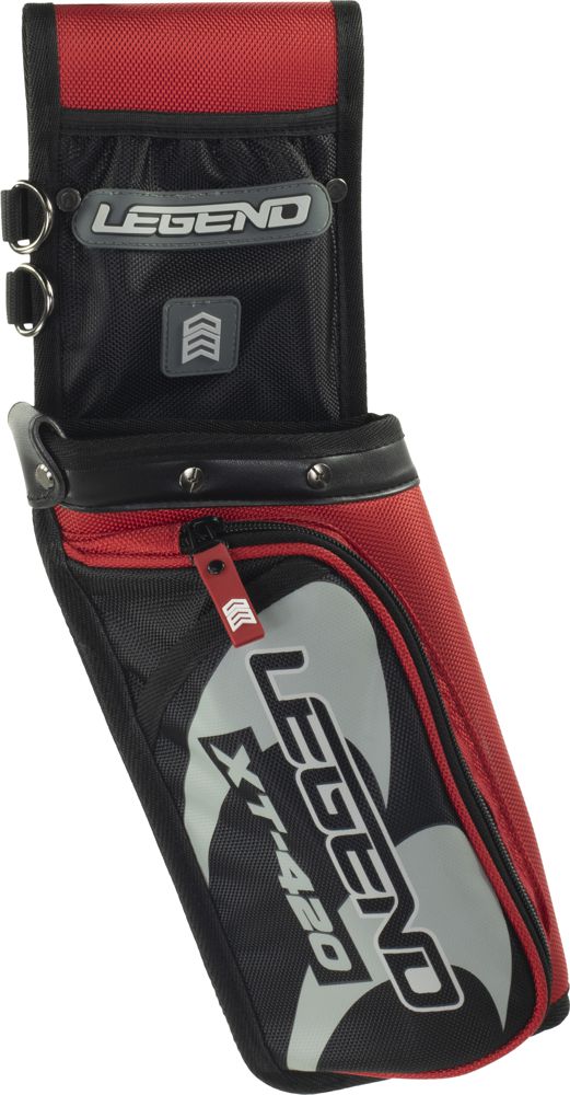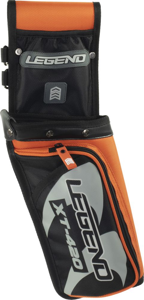 Field quiver with divided arrow compartment, external loops, large accessory pocket and space for pens and scorecards. Colour matching tabs on durable zips allow for easy opening even with cold or wet hands. Black, clip belt included right and left handed models available in 8 colour options.
