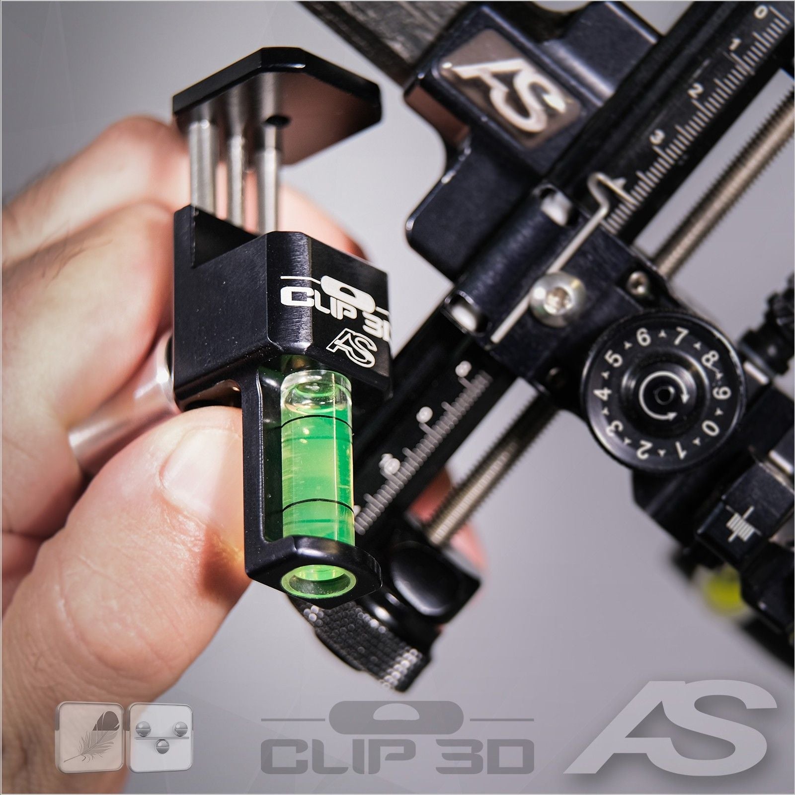 The Clip 3D is a sight axis adjustment tool compatible with most bows and all Arc Systeme sighting systems. Fix on the string, bow handle, or sight. Easy adjustment of the sight mounting. Even easier adjustment of 2D, 3D, or MICRO 3D heads. Pinch to fix, adjust, then store the tool in its protective cover (supplied) until next use.