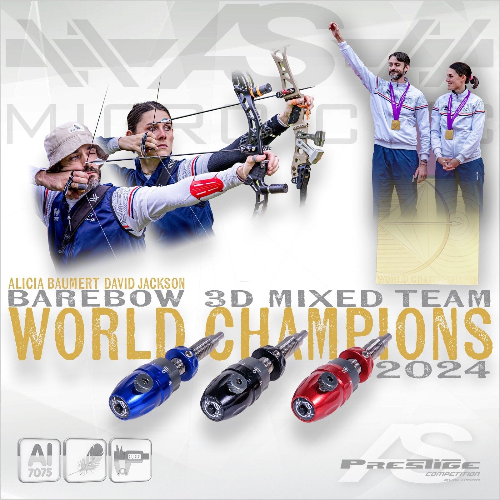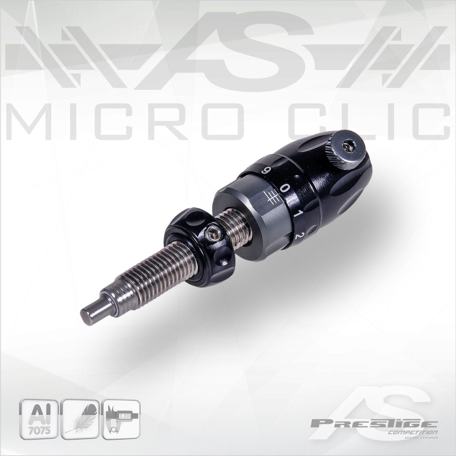 PRESTIGE model in anodized 7075 aluminium and stainless steel, guidance calibrated to the hundredth.