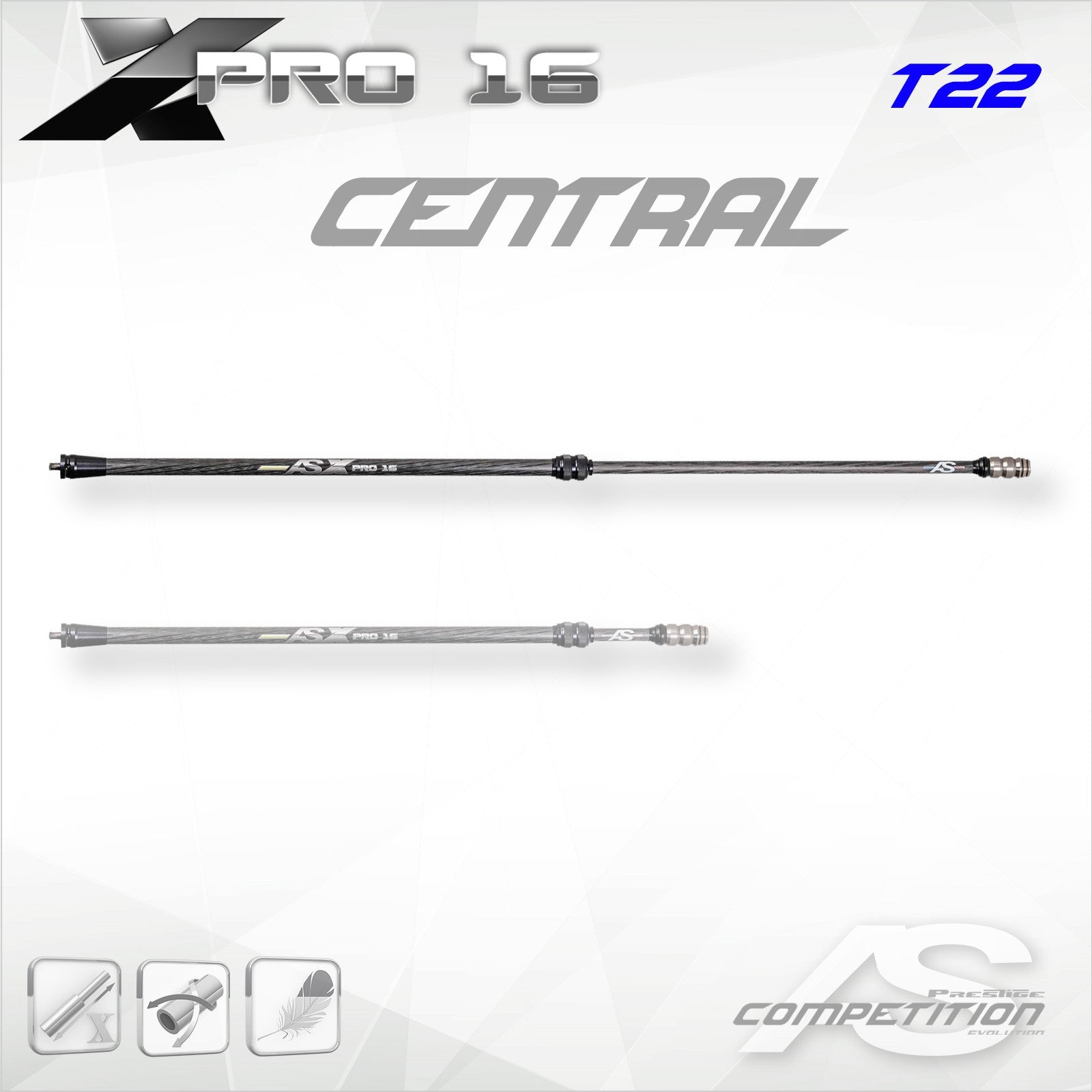 Telescopic central bar 16mm. The AS line is designed for the best compatibility between all accessories. Central bar only. Weights fixing tulip included (T12/22 or T12/35). T22 comes with 2 intermediate weights and 1 finishing weight (22mm and 30g each). T35 tulip alone. Telescopic dimensions from 52.5 to 80cm (21 to 31.5in). Graduations per inch (25mm). Tightening wrench supplied.