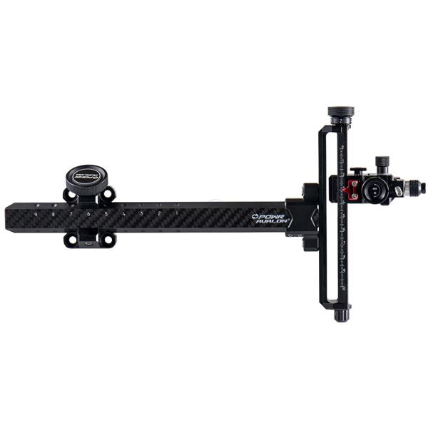 Recurve sight with a carbon extension arm. Black colour. Supplied with an 8-32 threaded sight pin and a soft case.