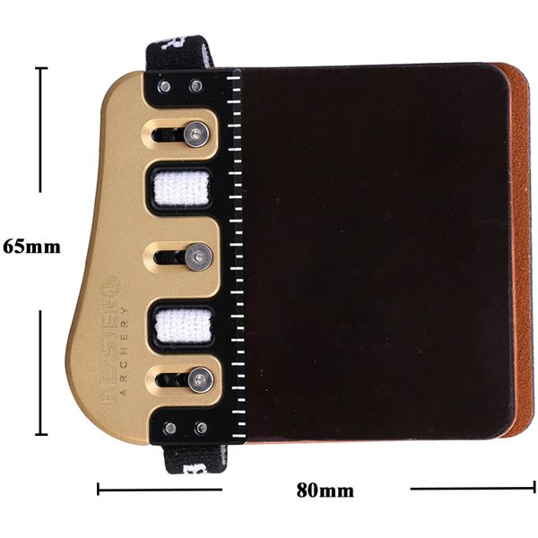 Pro barebow tab with cordovan face and brass plate. Radiused edges designed to accommodates many hand sizes. The aluminium scale plate allows 5mm adjustment to suit different palm sizes. Humanely sourced cordovan leather faces and soft micro leather. Comfortable suede backing, elastic cord and powerful aluminium cord lock. Medium and large sizes in RH and LH models.