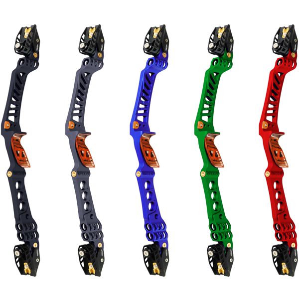 Long 27 inch model. Recurve aluminium milled riser with new Tunnels design for accepting round balancing plugs (included). Dual colour anodized finish. ILF - International Limb Fitting. Features Gillo floating limb pockets for more than 40% poundage adjustment range. Integrated vibration reduction system. Stainless steel limb bolts. Wood laminated advanced grip. Riser sleeve included. Compatible with G1 and G4 barebow weights. Mass weight 1540g.