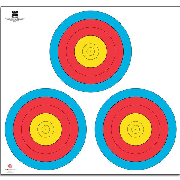 40cm face - Scoring zones 10-6 with X ring. Reinforced paper for longer use life. Scoring zones from 6-10. Inner 10 / X-ring. 20cm, three spot size. As used for FITA indoor rounds and Vegas / NFAA tournaments....