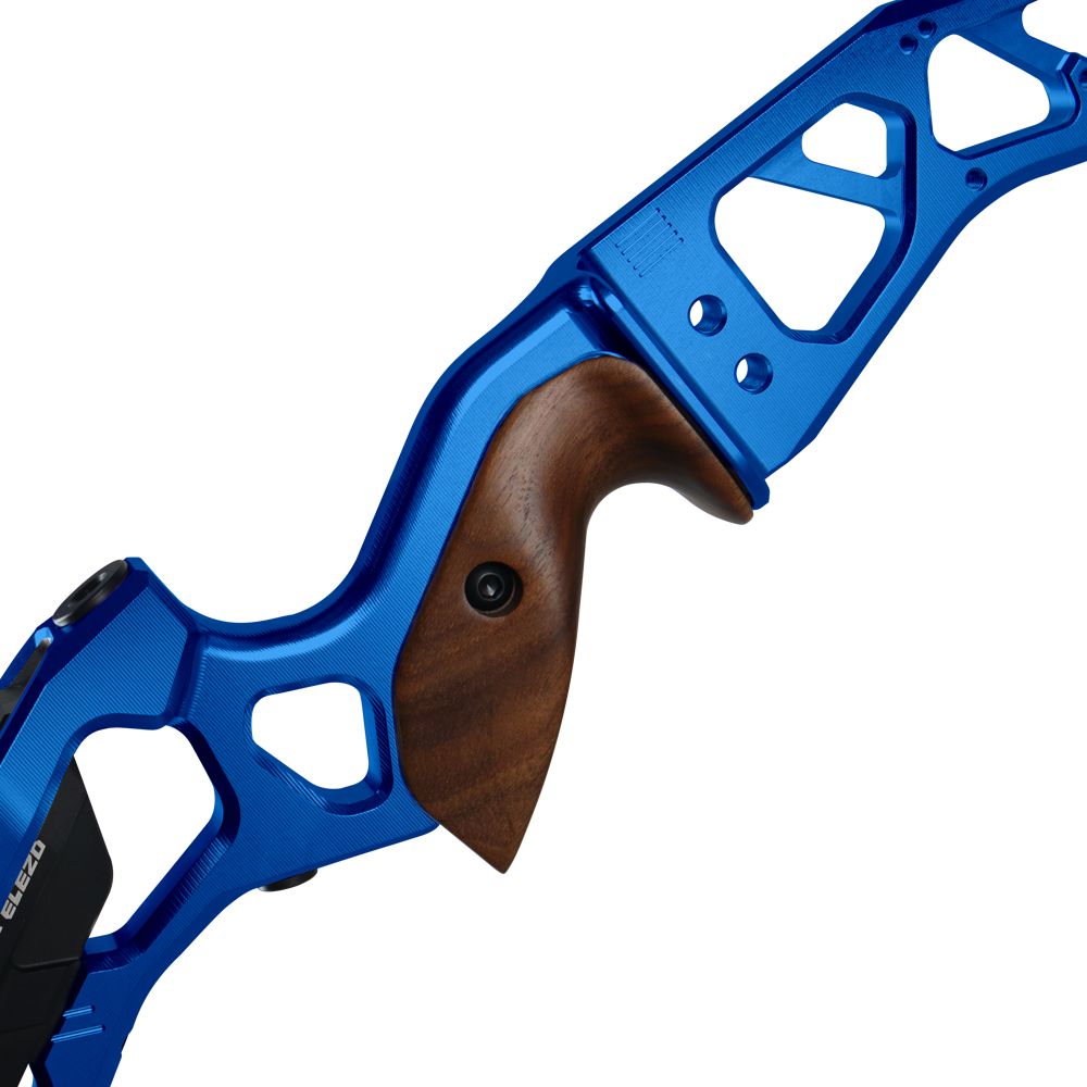 The Kinetic Elezo Hybrid Barebow Riser is designed for archers who value precision, versatility, and value—without compromise. Whether you're training for competition or switching between Olympic recurve and barebow, the Elezo delivers dependable performance in a refined, balanced design. CNC-machined from 6061-T651 aluminium, this riser offers increased rigidity and control, ensuring consistent feedback and reduced flex under pressure. Its geometry is tailored specifically for barebow shooting, while remaining compatible with Olympic-style setups for added versatility. The integrated 330g riser weight enhances stability, and the included wooden grip provides a natural and secure hand fit. With a high-end finish and competitive price point, the Elezo gives you more control, more balance, and more potential—every shot, every round.