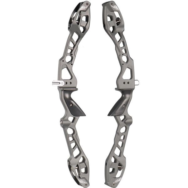 A stunning design accessible for everyone. Length 25in. Weight 1190g. Geometry with structural rigidity and vibration attenuation as the main focus. Easy to use limb alignment system, due to the design of the pivot block. Ergonomic and comfortable designed grip. Lightweight due to its structural features. Die cast risers are recommended to shoot under 40lbs by the manufacturers....