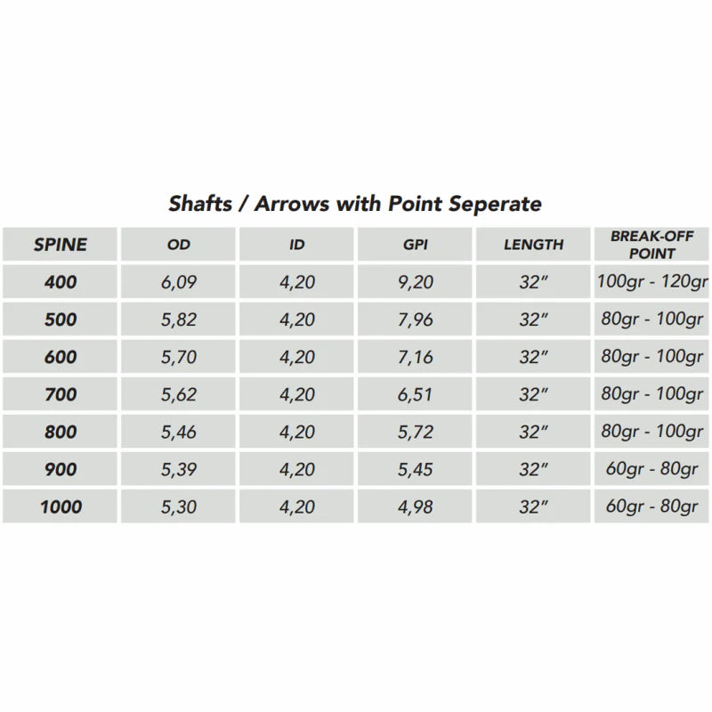 The Shocq Shaft Inceptor X is a bare carbon shaft with 0.0015 straightness and a full spine range from 400 to 1000. Supplied with nock, pin, and point (not installed). Suited for target, competition and youth setups.